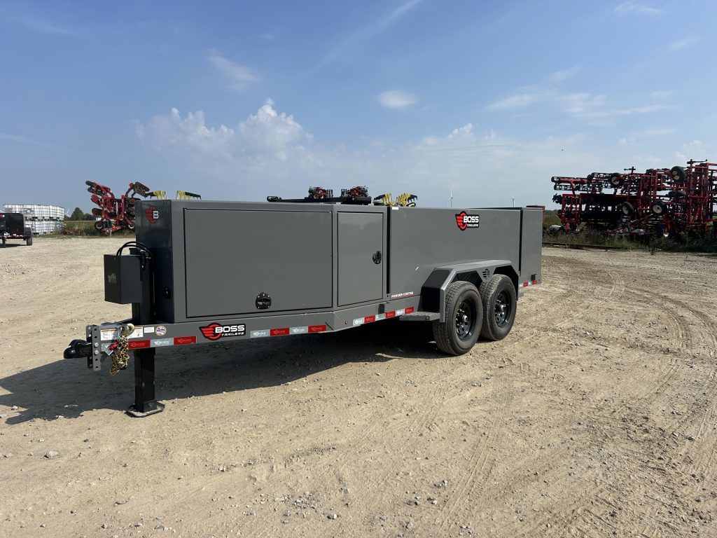 For sale is a new Boss Fuel Trailer 990. This trailer will help get diesel and DEF to the field in a safe and efficient manner. This 990 model is optioned out to allow for ease of used. This sharp light gloss black will be turning heads going down the road! Contact us for pricing and additional information.